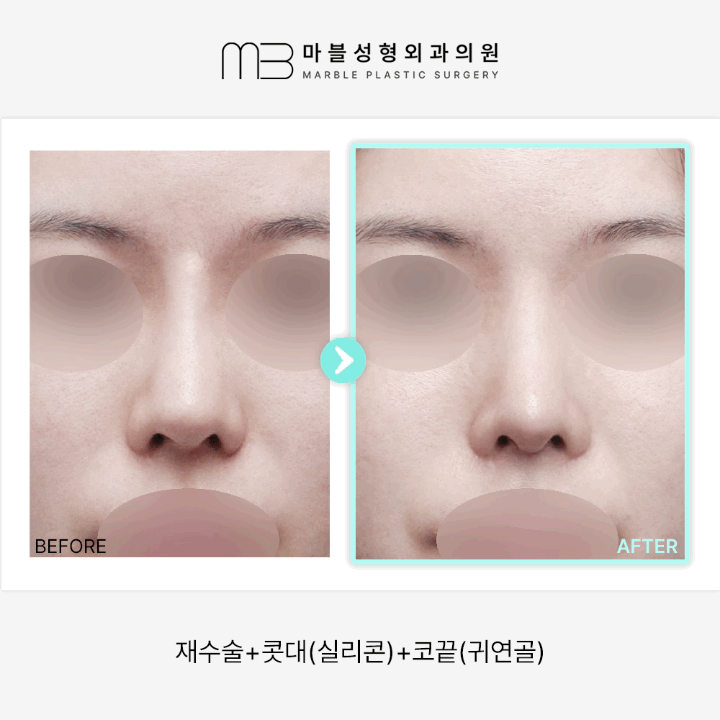 ◆◆마블성형외과◆◆ 코재수술 콧대+코끝+귀연골 코성형 3개월차 전후사진