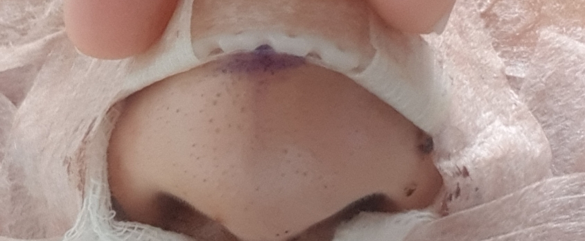 부목 떼기전 콧구멍모양이 삼각형으로 치솟았어요