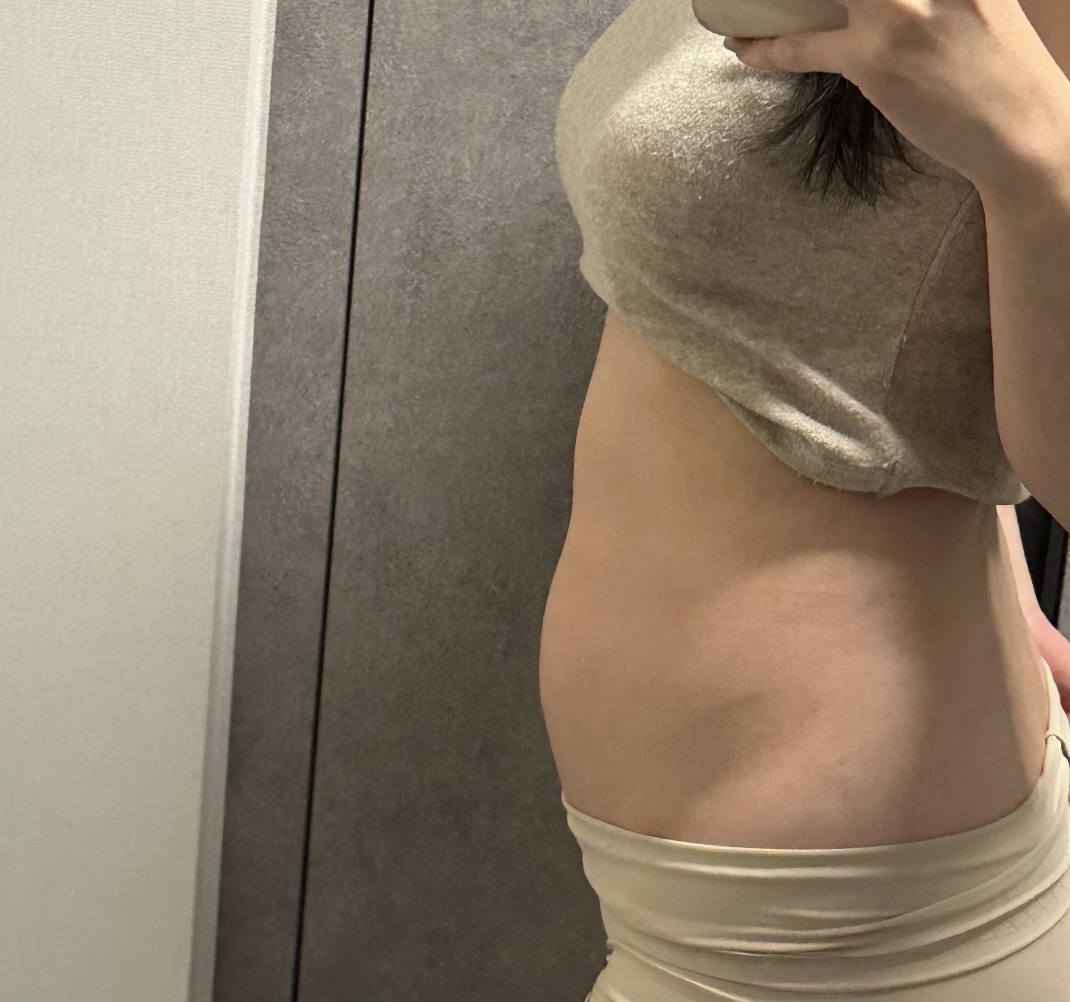 허리 라인이 살짝 보여요ㅎㅎ