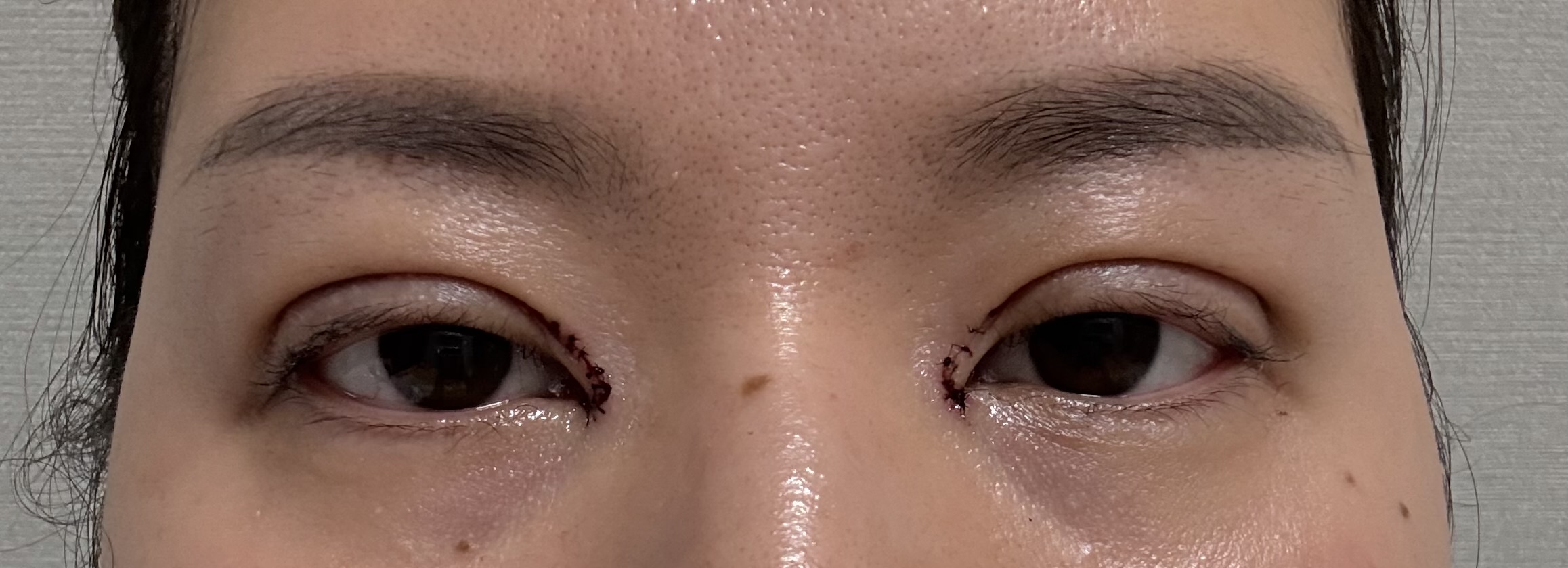 유착으로 쌍수했고 비절개눈교했는데