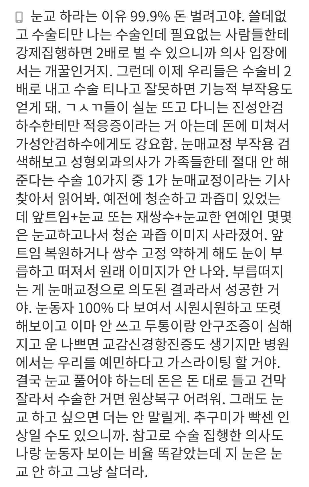 <참고하면 좋을것같아서 첨부하는 이미지! 어떤 예사가 써준 댓글이야>눈매교정 고민하고 있는 예사들,,