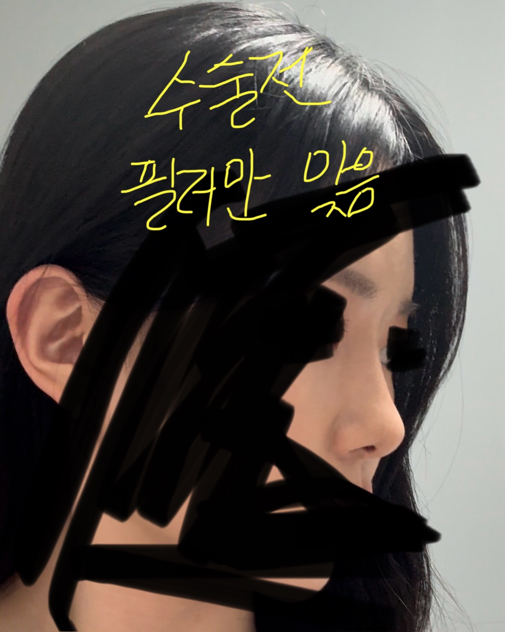 수술 전 얼굴 전체 면적으로 봤을 때 짧은 코에 매부리도 좀 있어서 코끝이 아래로 떨어짐요 또 코끝은 살짝 뭉뚝해서 복코 느낌도 있었어요ㅠㅠ 뭐든 심하진 않지만 애매한 코라서 멀리서 보면 몰라도 가까이서 보면 하나하나 아쉬운 부분이 많았거든요… 특히 코가 전체적으로 작다 보니까 얼굴에 입체감이 없고 조금은 중성적인 인상이 되는 게 고민이었어요 ㅠ 코라인이 반듯하게 자리 잡은 여성스러운 인상을 원해서 예쁜 코 라인 잘하는 병원 위주로 알아보…