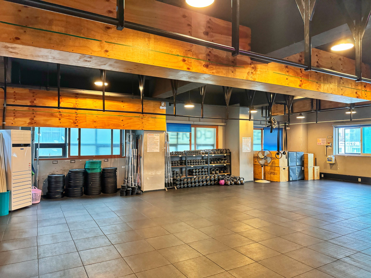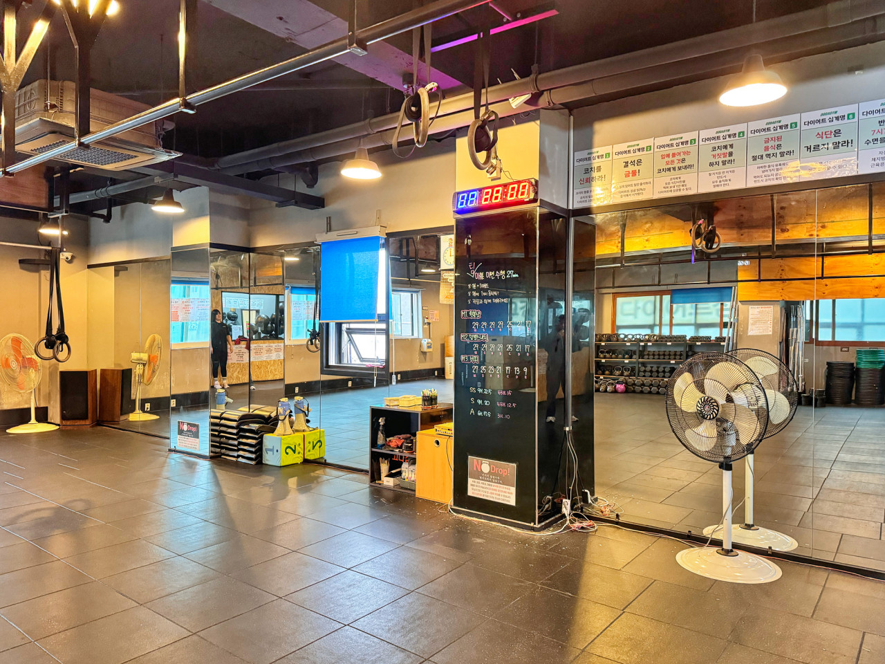 크진 않은데 다같이 모여서 하는 크로스핏이라 불편하진 않음 근데 처음 운동 시작하는 사람들은 수많은 고인물 사이에서 조금 부끄러울 수 있을 거임 공개처형되거든