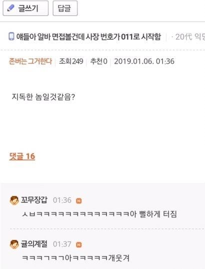 얘들아 알바 면접볼건데 사장 번호가 011로 시작함
