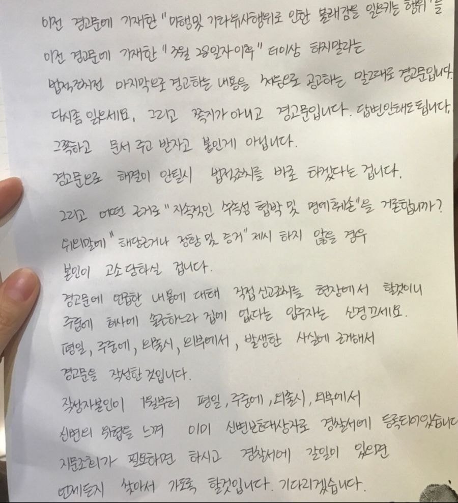 아래 옆집에서 쪽지 받은 사람의 전 세입자가 받았단 쪽지