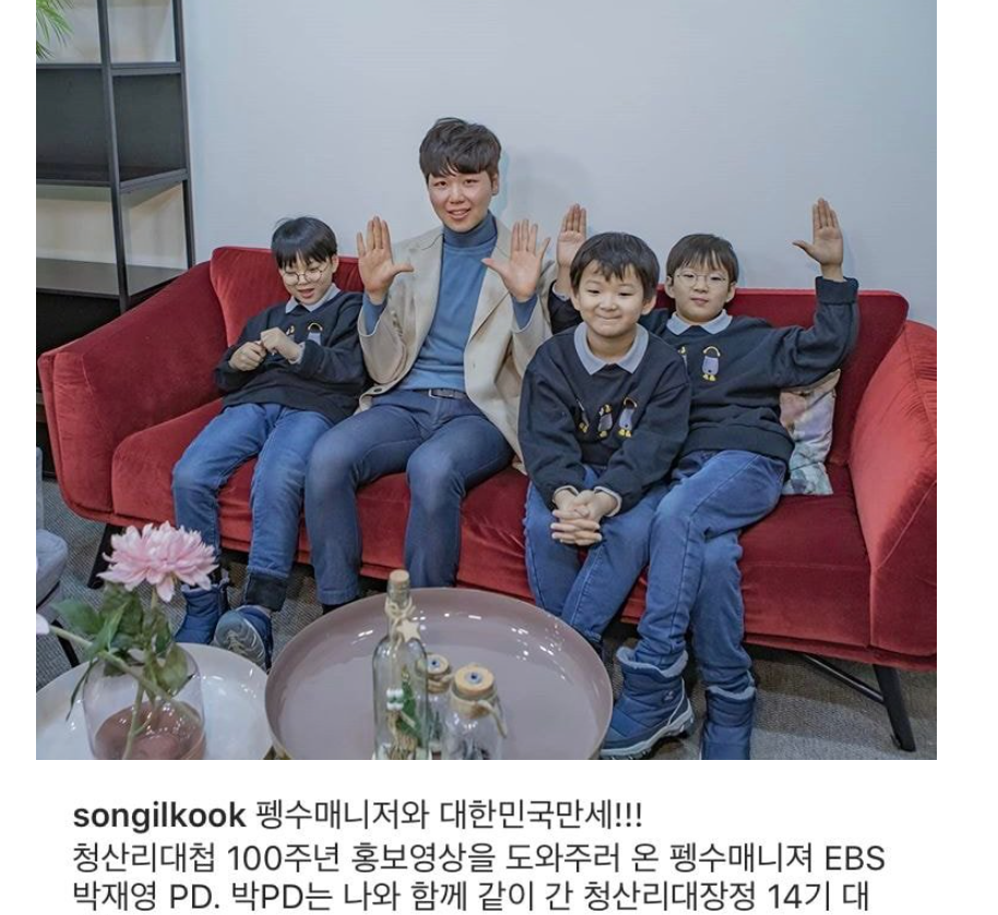 펭수 맨투맨 입은 삼둥이 (송일국 인스타)
