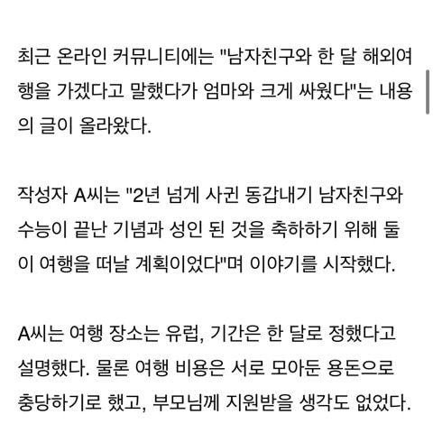 수능 끝나고 남친과 1달 유럽 여행 간다니까 머리를 싹 다 밀어버린다는 엄마