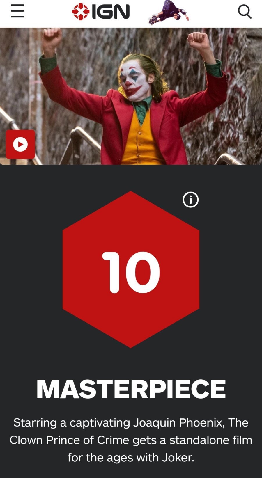 호아킨 피닉스가 주연으로 출연한 조커 평점을 봤는데