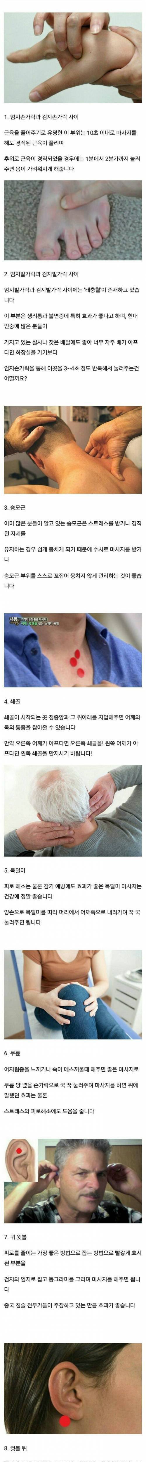 근무시간에 꾹꾹 눌러봐야겠어용 다리라던가 발바닥은 못누르겟지만요 ㅋㅋ(민망) 좋은정보 감사합니다