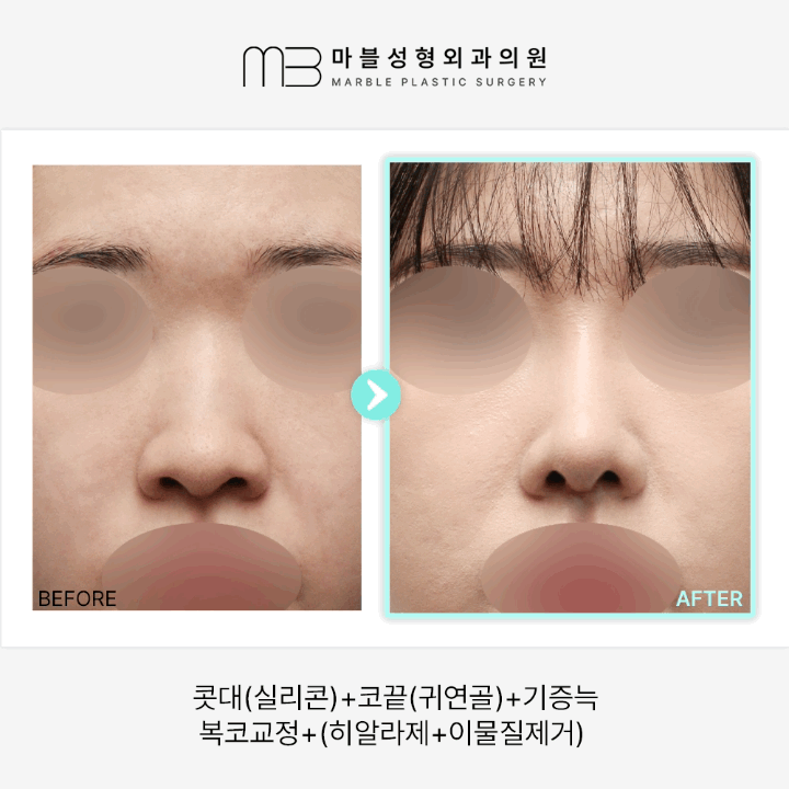 ★마블성형외과★ 코성형 콧대+코끝+복코교정+기증늑+히알라제 전후사진