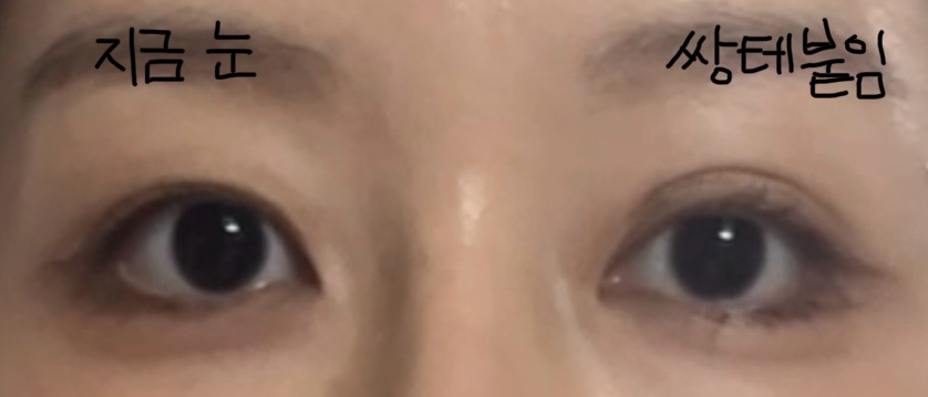 왼쪽이 지금 내눈 오른쪽이 쌍테 붙여본거