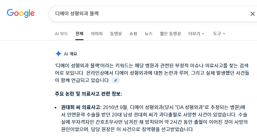 [성형수다] 구글 검색 ai요약은 너무 믿지마;