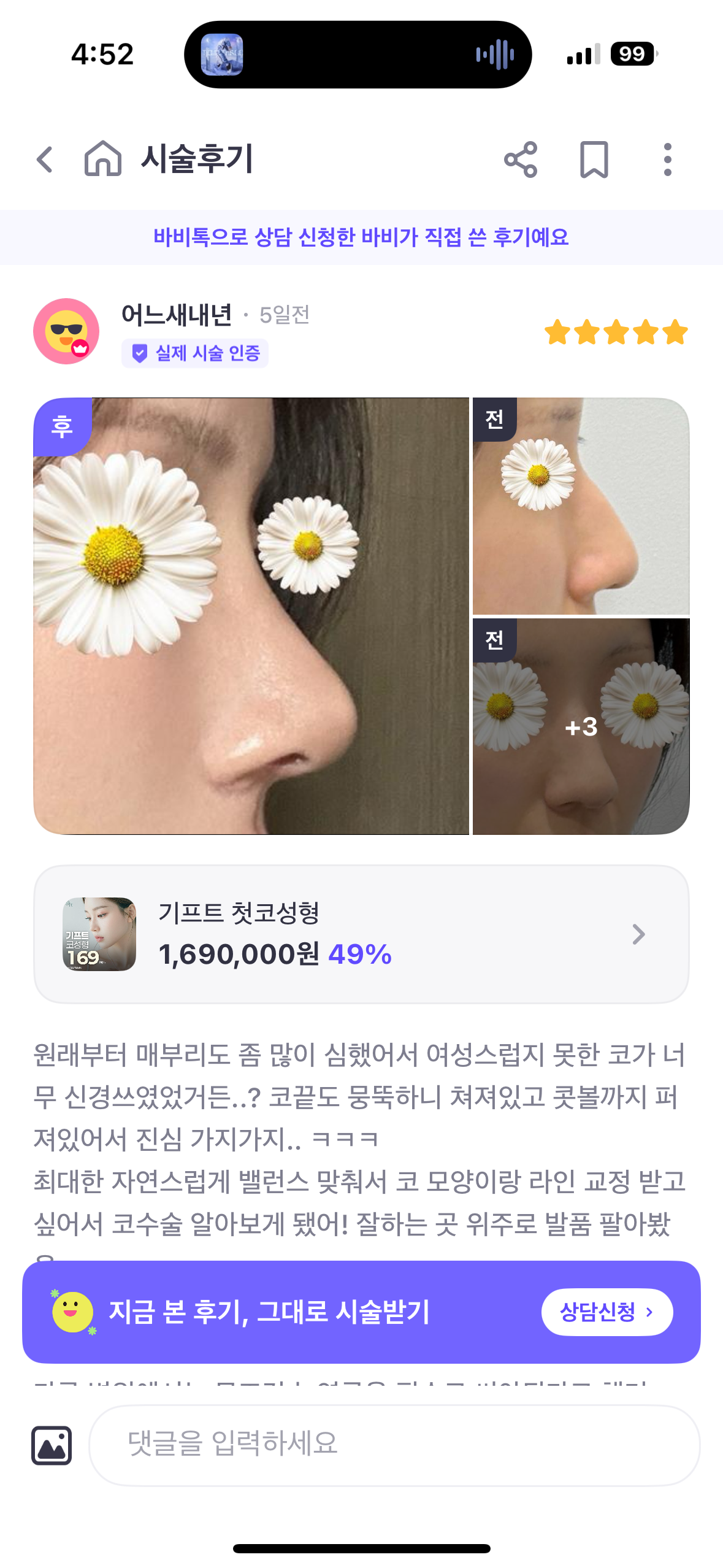 코제거/재건 수술후기