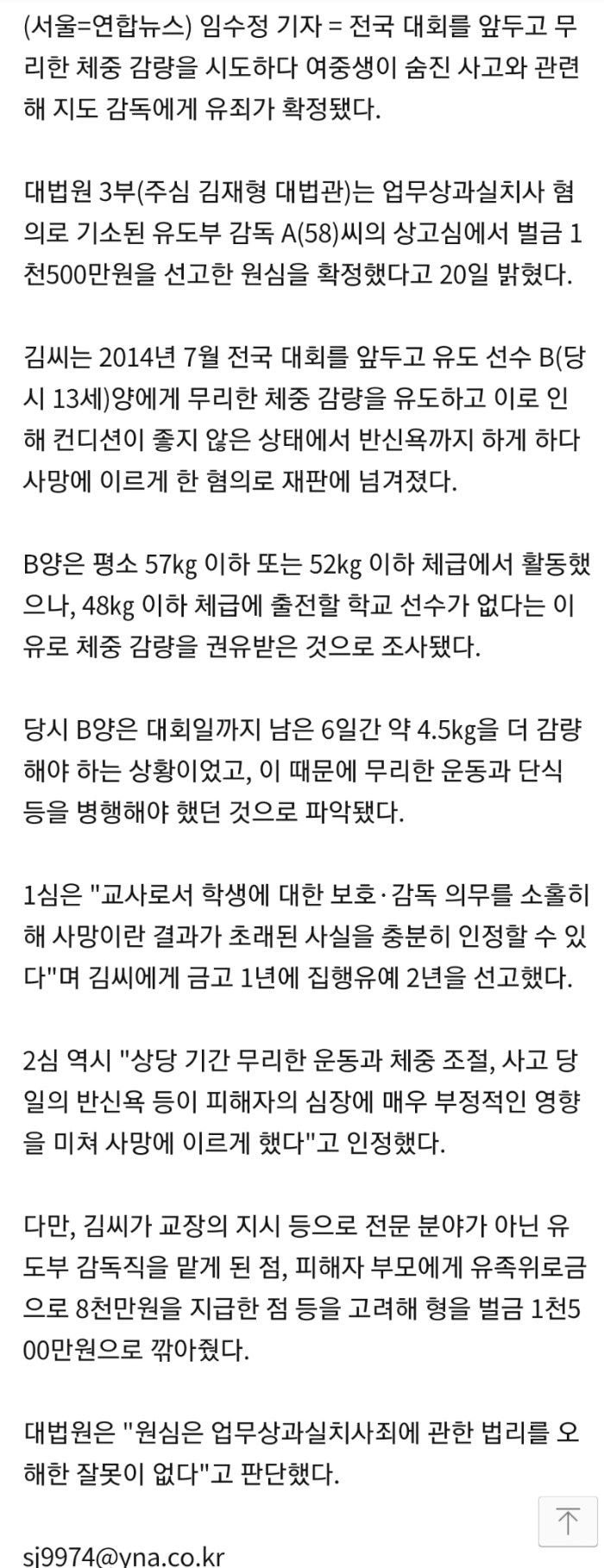 체중감량하다 숨진 유도부 학생