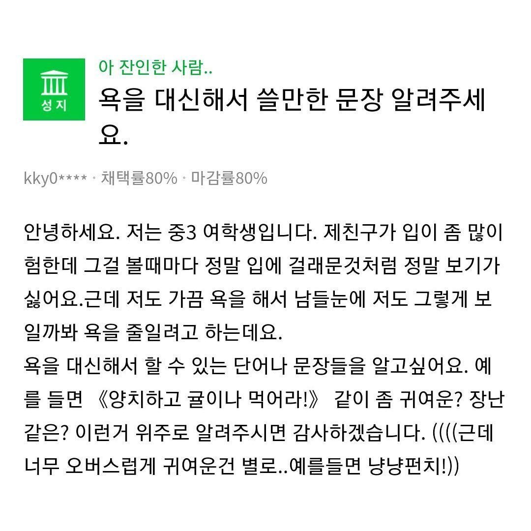 [유머&이슈] 욕을 대신해서 쓸만한 문장 알려주세요