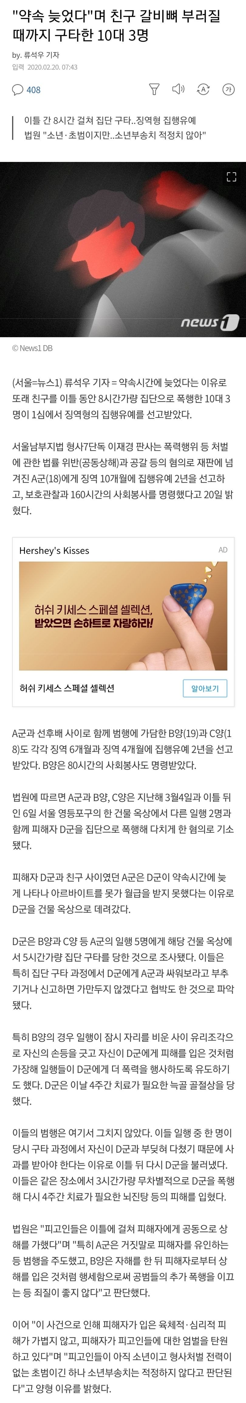 [유머&이슈] "약속 늦었다"며 친구 갈비뼈 부러질 때까지 구타한 10대 3명