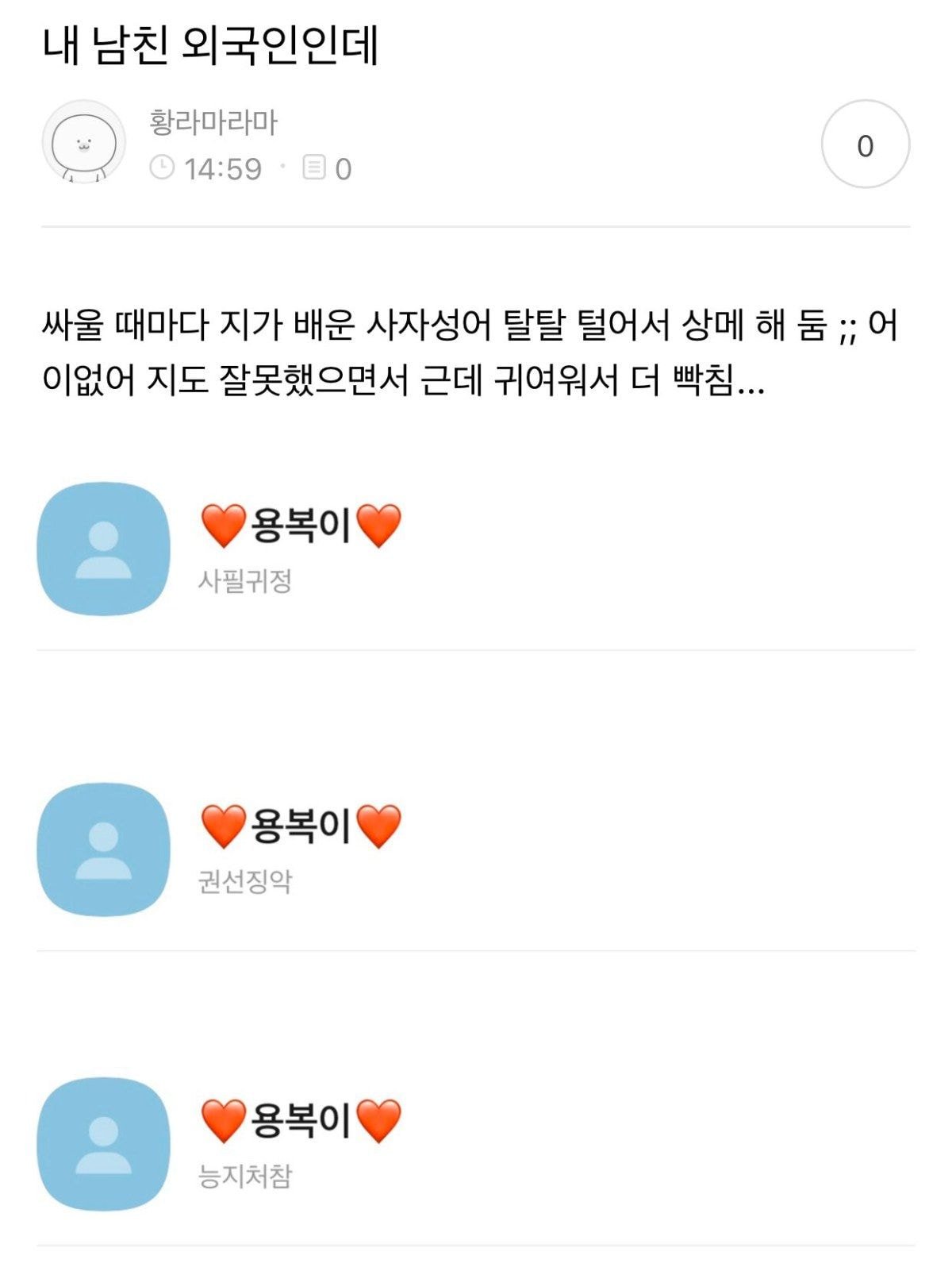 ㅋㅋㅋㅋㅋ앜ㅋㅋㅋㅋㅋㅋ 귀엽네여. 어찌 나보다 더 사자성어를 많이 아는듯한..