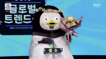 '남자 신인상' 후보로 호명된 펭수는 이날 유산슬에 대해 묻자 "라이벌 유산슬, 알고 있다"라고 말했다. 유산슬이 인사를 건내자 펭수는 "유재석이 잖아요. 닮았네요"라고 이야기하면서 유산슬과 장성규가 남자 신인상을 수상한 것에 "일절 아쉽지 않다. 후보인 줄도 몰랐다"고 쿨하게 답해 웃음을 자아냈다. 글로벌 트렌드상은 '복면가왕' 팀에게 돌아간 가운데, 펭수는 수상 소감이 진행되는 동안에도 무대에 남아 재치있는 리액션을 보태 큰 웃음을 선사했다.