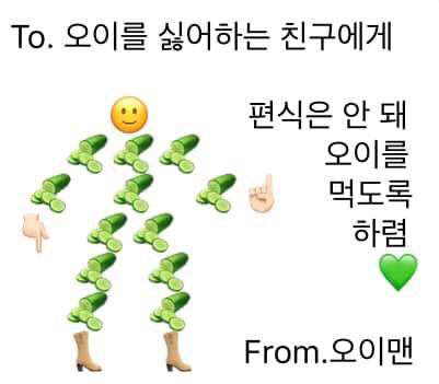 이모티콘이 오이먹고싶어지는 이모티콘이네욬ㅋㅋㅋ 진짜 오이먹게될듯