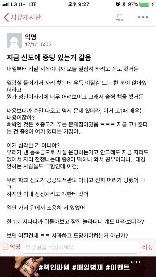 [유머&이슈] 대학도서관 열람실에서 공부하는 중딩