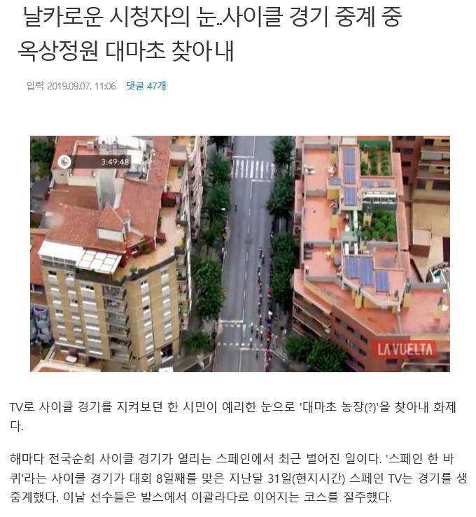 아 ㅋㅋ저게 대마초라구요??? 그냥 옥상정원이구먼 하고 넘겼을거 같은데 찾아낸분도 대단해요 !