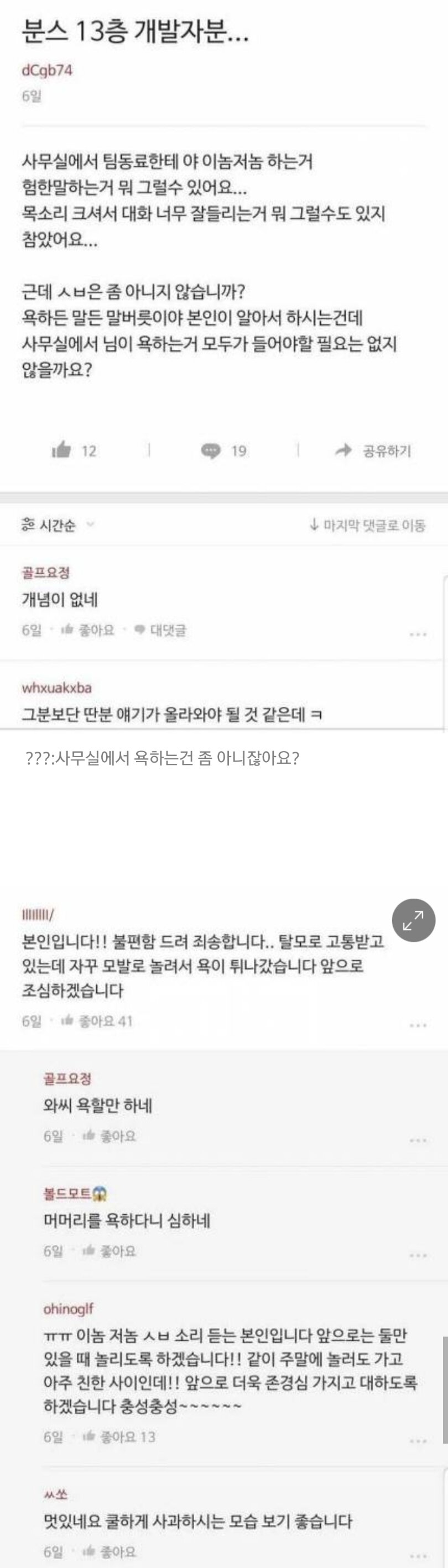 사무실에서 욕하는건 좀 아니지 않나요?
