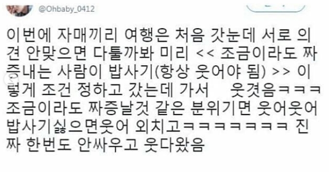 ㅋㅋㅋㅋㅋㅋㅋㅋㅋㅋ이얼 저도 친구랑 여행갈때마다 웃어웃어