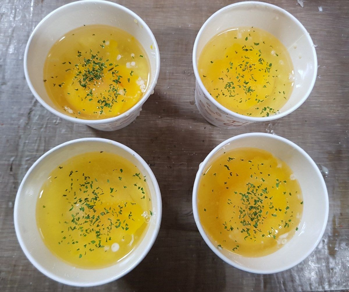 종이컵에 기름 발라주고 3분의1 정도 반죽넣고 계란하나씩 넣어줌(기름은 종이컵 위까지 꼼꼼하게 발라줘야 골고루 갈색나옴)