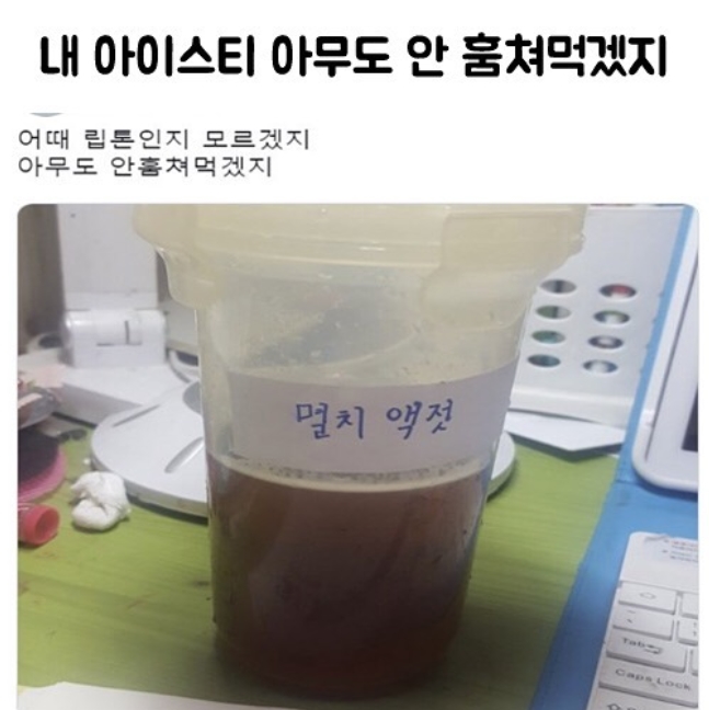 아니 사무실에 멸치액젓이 있는게 너무 이상한거 아닌가요 ㅋㅋㅋ