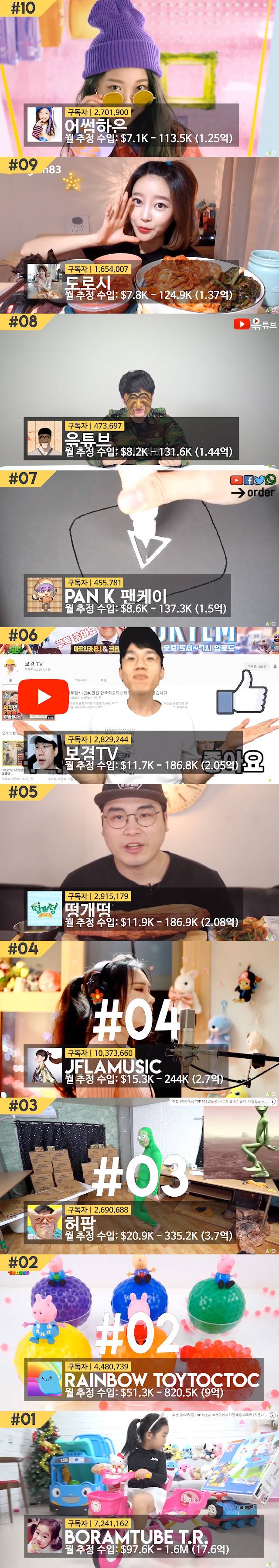 [유머&이슈] 한국 유투버 수입 top10