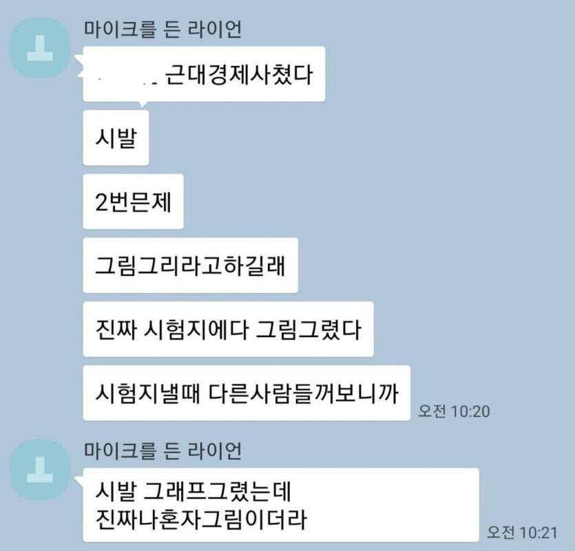 그림 그리라는 문제여서 시험지에 진짜 그림그렸다고ㅋㅋㅋㅋㅋㅋ